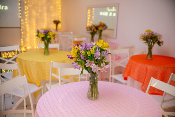 Foi tudo maravilhoso, superou todas as minhas expectativas. A decoração muito mimosa e de muito bom gosto. Contratamos a mesa de chocolates, que foi um sucesso à parte! Os salgadinhos e bebidas muito bem servidos. O DJ animou a galerinha e não deixou ninguém ficar parado. E como não deixar de falar da cerimonialista Lidiane, muito dedicada, foi um amor conosco!!!